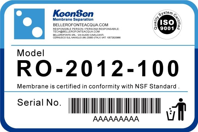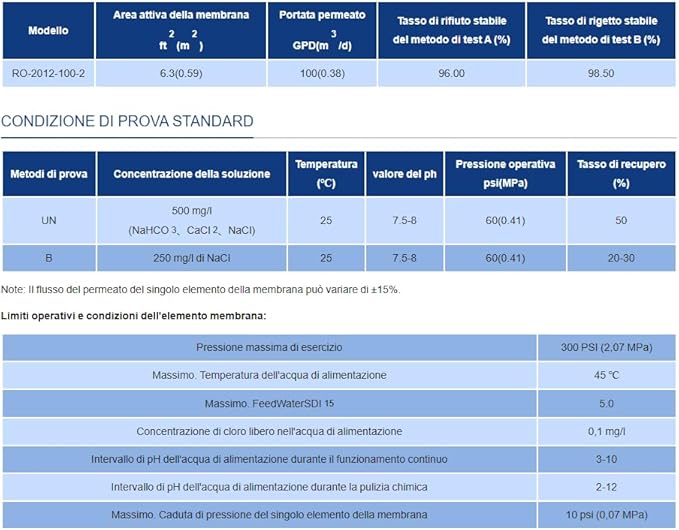 Membrana RO-2012-100 GPD ad alte prestazioni - serie residenziale - per impianti ad osmosi
