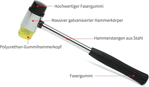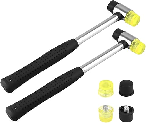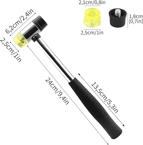 2 Pezzi 25 mm Martello Gomma, Martello antirimbalzo, Piccolo Nylon Martello Con 4 Teste di Martello di Ricambio con Impugnatura in Gomma Antiscivolo, Per Legno, Plastica, Pelle