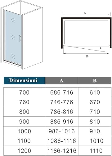 80x195cm Porta Doccia per Nicchia Apertura Battente in Vetro Temperato Satinato Opaco 6 mm Anticalcare Telaio Cromo Lucido (montaggio verso irreversibile)