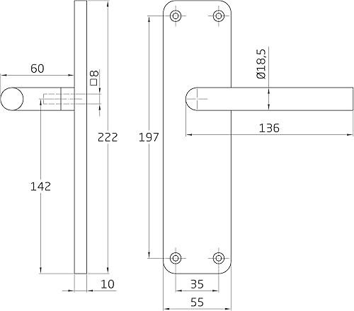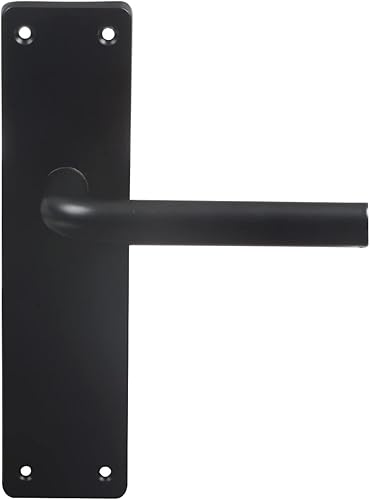 Amig Set di maniglie in alluminio argentato con placca quadrata e manico curvo per porte di passaggio e ingresso di interni ed esterni 222 x 55 mm, maniglia con maniglia decorativa e moderna