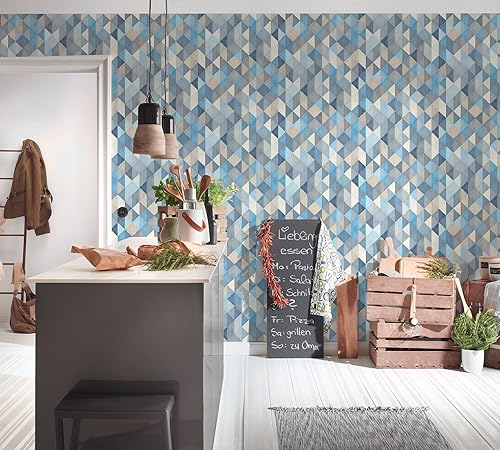Carta da parati in tessuto non tessuto Scandinavian 2, 10,05 m x 0,53 m, blu, marrone, grigio, Made in Germany 367863 36786-3
