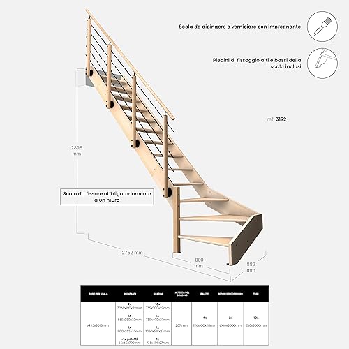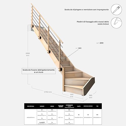 NOSTRA – Scala in legno con 1/4 di giro a sinistra in faggio