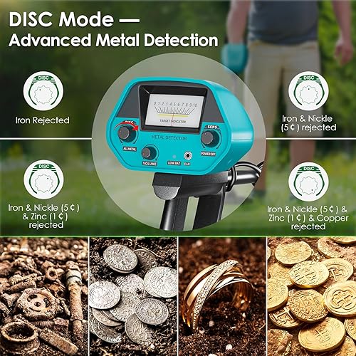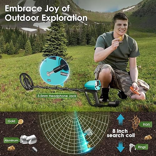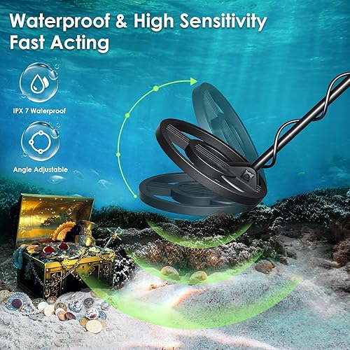 HIUYRFS Metal Detector ad Aalta Precisione Impermeabile Altezza Regolabile, Detector Oro 25cm Bobina di Ricerca Rilevatore per Bambini e Adulti, Cercatore d'Oro, Batteria Ricaricabile