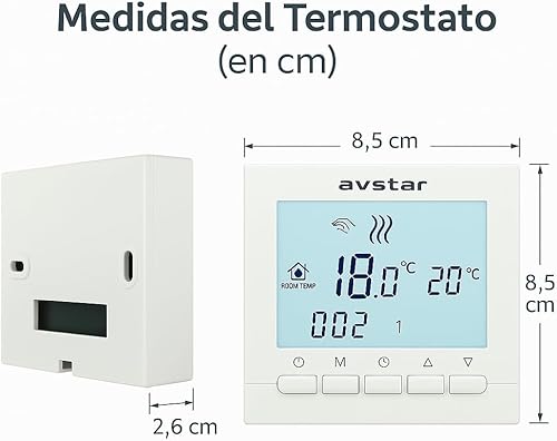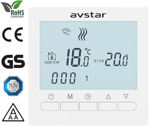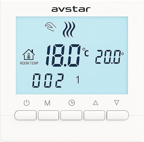 AVstar – Termostato intelligente programmabile per riscaldamento, adatto per caldaie a gas, con schermo a LCD, cover e illuminazione bianca, stile elegante