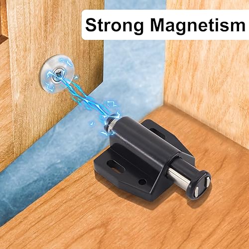 12 apriscatole magnetiche, apriporta a pressione, chiusura magnetica, chiusura magnetica, porta dell'armadio, per ufficio, cassettiera, porta dell'armadio (nero)