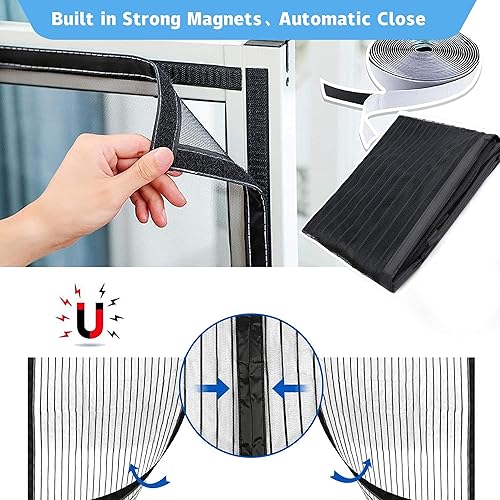 Zanzariera Magnetica Porta Finestra, 105 x 185 cm Zanzariera Porta Finestra Magnetica, Resistente Traspirante per Porte Finestre Balcone Soggiorno, Nero