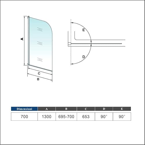 Sopravasca Parete Per Vasca Girevole 180° Vetro Temperato 5mm Trasparente Maniglia Portasciugamani Telaio Cromo Lucido 70x130cm