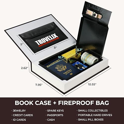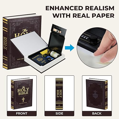 Sekam Cassaforte a libro con serratura a combinazione, cassaforte nascosta (27,7 x 19,6 x 4,6 cm) con borsa ignifuga, cassaforte per la deviazione segreta, scatola per libri vuota, cassetta di