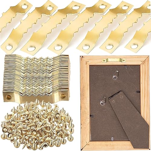 Foto Cornice Ganci Appendini da 40 mm, portafoto da 50 pezzi con cornice a dente, doppio foro con viti, dorato