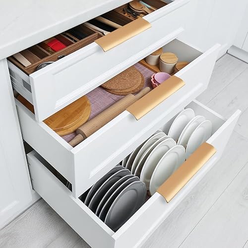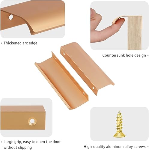flintronic Maniglie Armadio Nascoste, 6 Pezzi 150 mm Maniglie Nascoste per Armadietti(Interasse: 128 mm), con Viti, per Porte, per Casa, Cassetti, Armadi -Oro