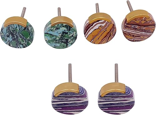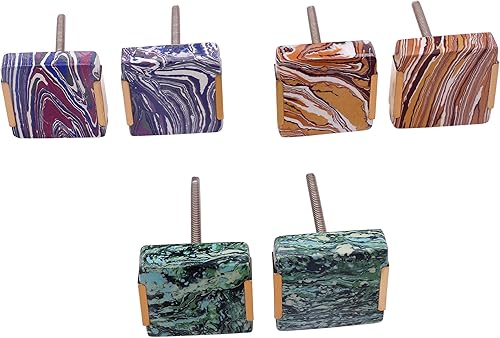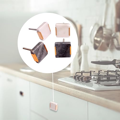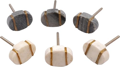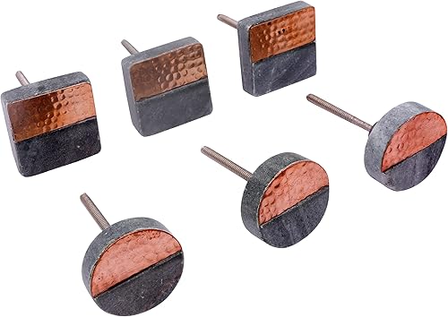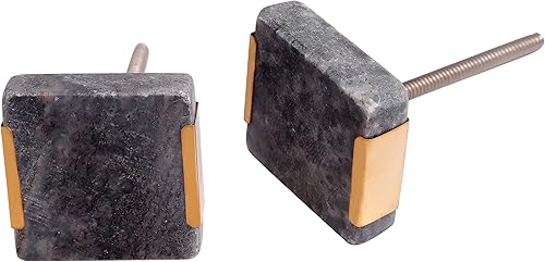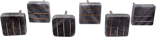 Set di 6 pomelli quadrati in pietra. 40 mm | Bellissime maniglie in nero ardesia con dettagli in metallo dorato | Adatte per armadi, credenze, cassetti, porte... Eleganti maniglie multiuso.