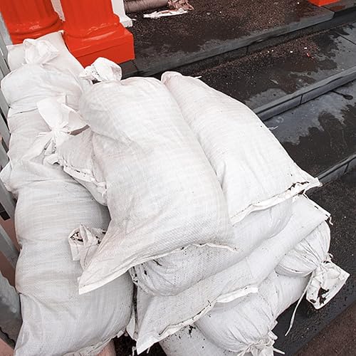 SEUNMUK Sacchetti di sabbia vuoti vuoti da 40 x 80 cm, in polipropilene bianco e sabbia, per il controllo delle inondazioni, con fascette da 20 m per il controllo delle inondazioni, confezione da 50