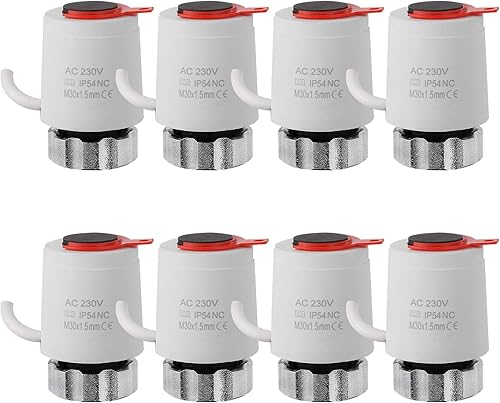Attuatore Per Riscaldamento A Pavimento, 8 Pezzi 230V M30x1,5mm NC (Normalmente Chiuso) Valvola Per Riscaldamento A Pavimento Normalmente Chiusa Per Quasi Tutti I Distributori Circuito Riscaldamento