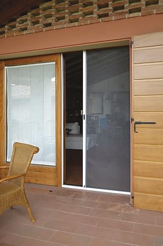 Zanzariera Universale Scorrimento Orizzontale Per Porte Portafinestra Balconi A Rullo Avvolgibile Profilo Riducibile Regolabile Telaio In Alluminio In Kit Fai Da Te Colore Bianco (120 x 250 cm)