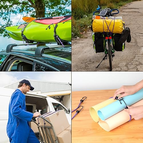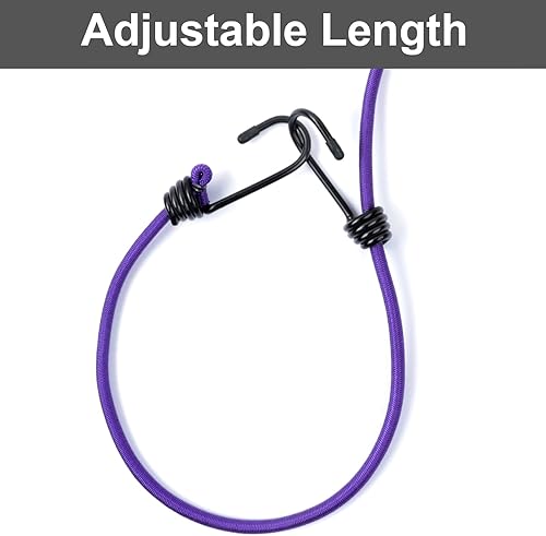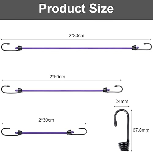6 Pezzi Corde Elastiche con Gancio, Corda Elastica in 4 Lunghezze: 30cm, 50cm, 80cm, Cinghie Elastiche con Ganci per Teloni, Portapacchi, Auto e Bici - Viola