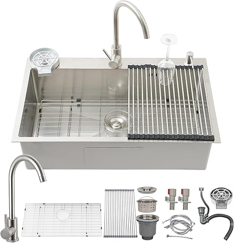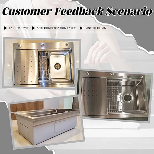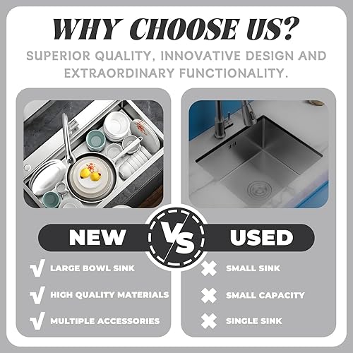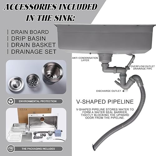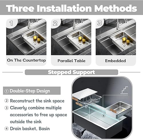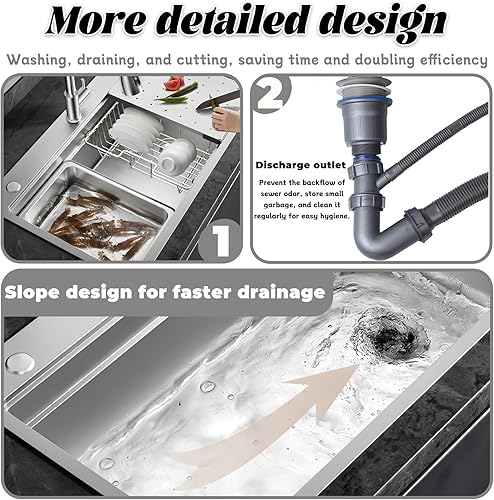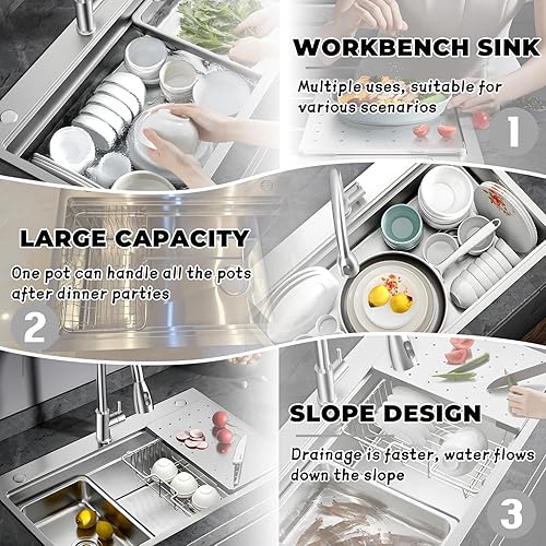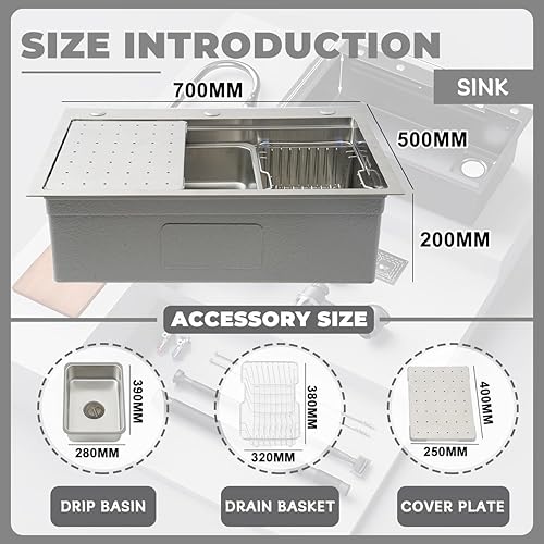 Lavandino Cucina, Vasca Singola, Multifunzionale Lavello Cucina In Acciaio Inox 50 Cm Di Larghezza, Lavabo Da Incasso Fatto A Mano, Con Filtro,sifone E Set Di Drenaggio(Silver-#B,70x50cm)