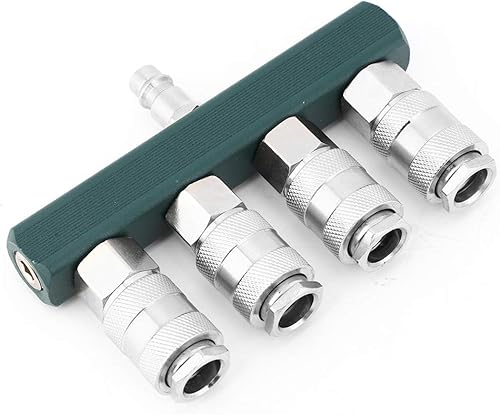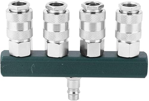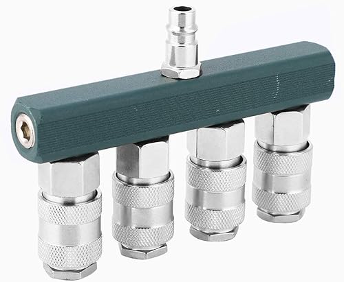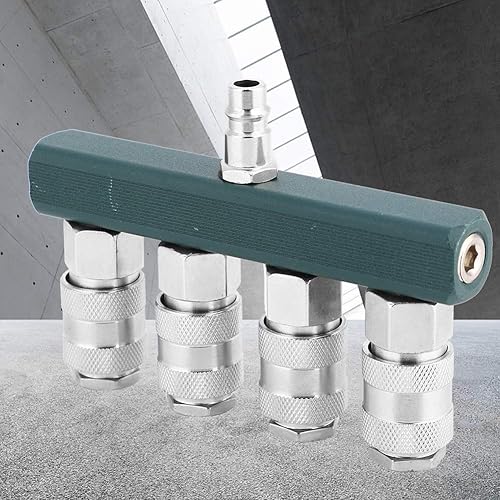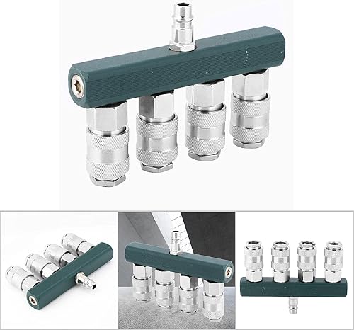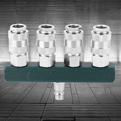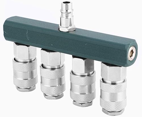 Distributore di Aria Compressa 1/4 Pollici a 4 Vie, Distributore di Aria Compressa con Attacco Rapido a Parete, Raccordo per Aria Compressa in Ottone, Interruttore Ad Aria