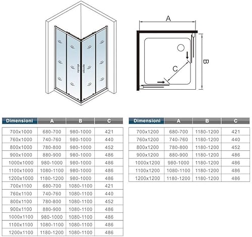 Box Doccia Angolare Porta Scorrevole 100x90x195 cm Vetro Temperato Trasparente 6 mm Anticalcare Profilo Cromo Lucido