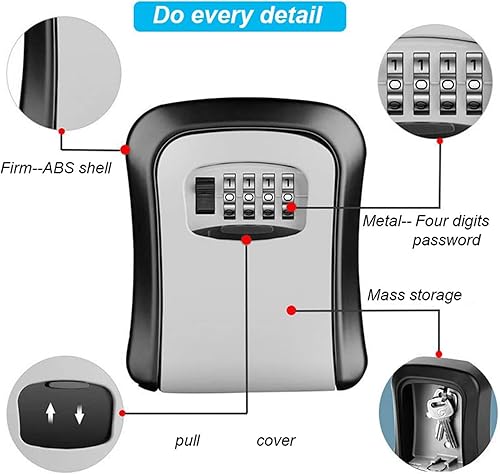 Key Lock Box 4 Digit Combination Safe, Wall Mounted Key Holder, Resettable Code Lock, Outdoor Security Box, Garage Key Storage, Garden Key Hider, Indoor Lock Box, Combination Key Safe