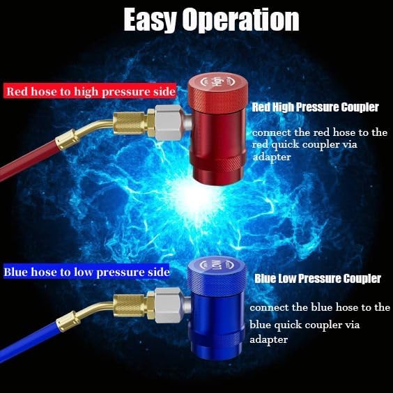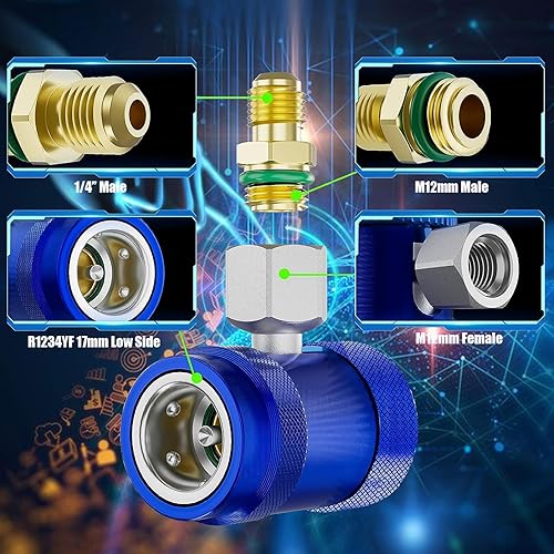 Adattatore ad Innesto Rapido R1234yf, Adattatore di Connessione Rapida per Adattatore Alta/Bassa Pressione per R1234yf, Adattatore Spina 1/4' Connettore Maschio Set Manometro Refrigerante