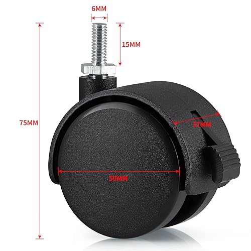 4 ruote in nylon da 50 mm con freno, ruota girevole a gambo da 6 mm x 15 mm, ruota in nylon con blocco per piccoli mobili