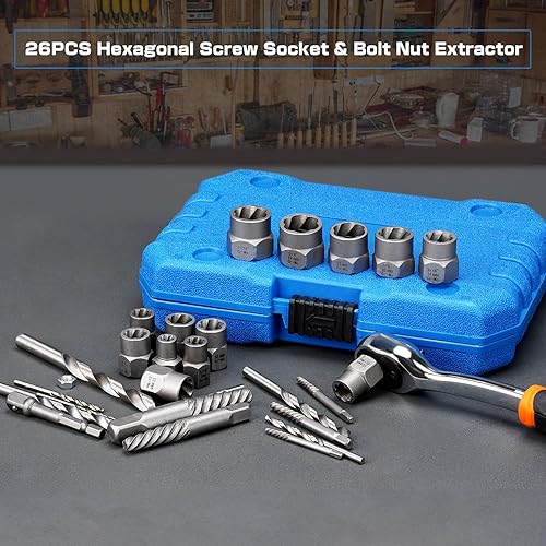 Set di cacciaviti, 26 pezzi, 3/8', cacciavite sinistro, dado di rimozione della bussola, 8-19 mm, dado turbina