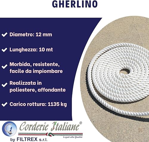 006004271 Gherlino cima per ormeggio, diametro 12 mm, 10 metri, bianco