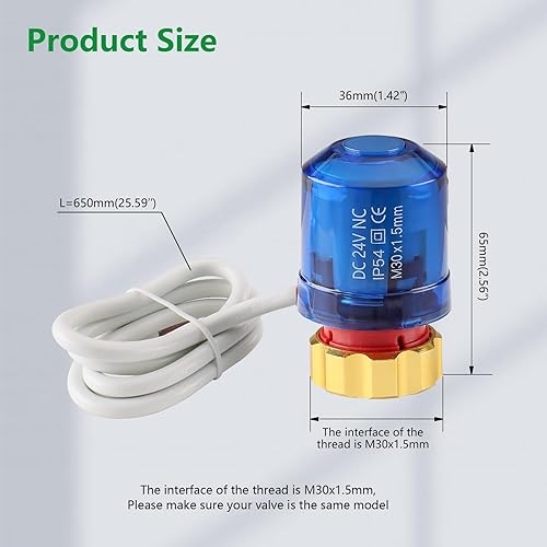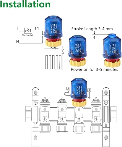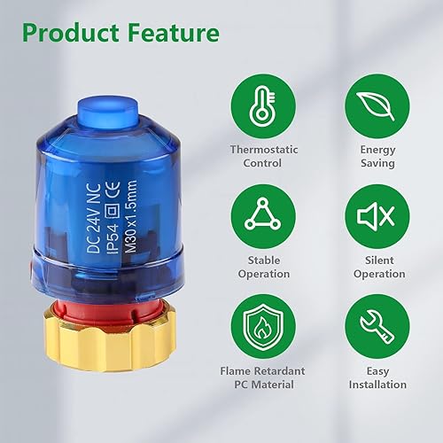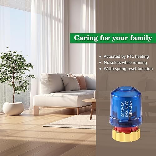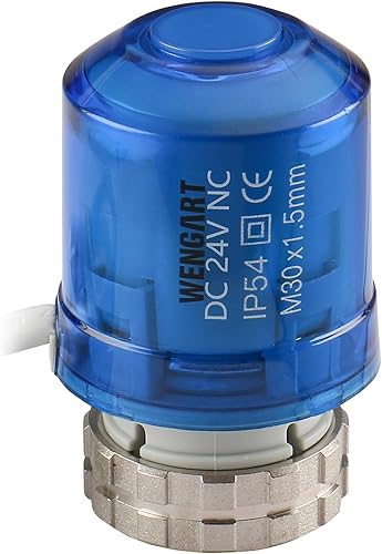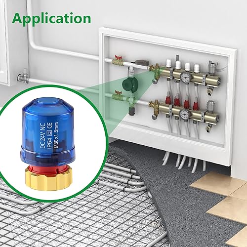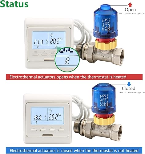 Attuatore termico WG02, valvola da 24 V, stato di accensione e spegnimento con indicazione LED a 360 gradi, Normalmente Chiuso, per termostato per riscaldamento a pavimento, blu