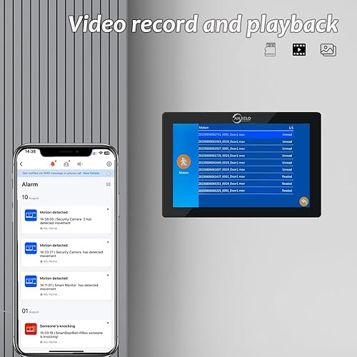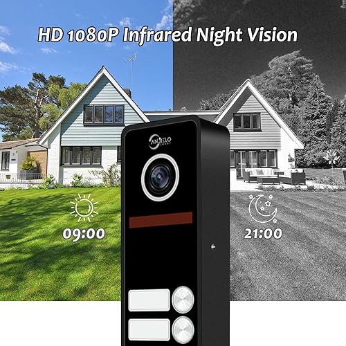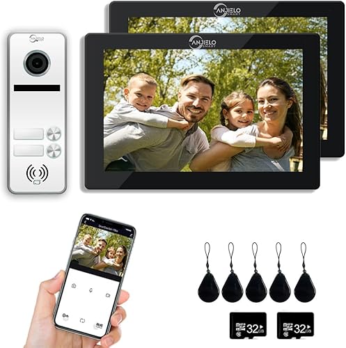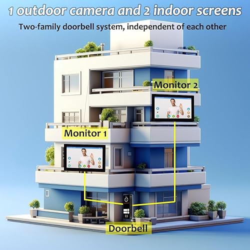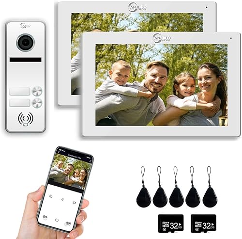 Citofono cablato per appartamenti, campanello a 2 famiglie, display touchscreen da 7 pollici, supporto di sblocco, citofono bidirezionale, rilevamento del movimento (bianco)