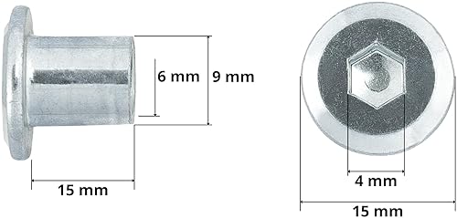 Dado Manicotto con Testa Piatta Esagonale M6 x 15 x 12 mm 100 Pezzi Acciaio Zincato Dado con Bussola con Cava Esagonale Testa Piatta Dadi Manicotti su chiave Allen Dadi Rotondi