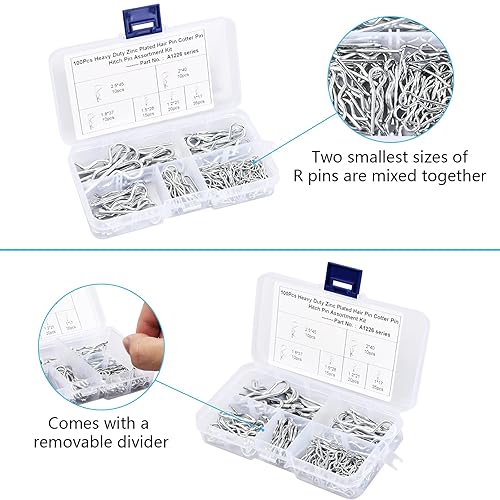 R Clip, 100 Pezzi Cotter Pin, Clip Coppiglia di Fissaggio in Acciaio Inossidabile, 6 misure Forma di R Coppiglia a Resistente con Scatola Immagazzinaggio per Auto Hardware di Fissaggio del Trattore