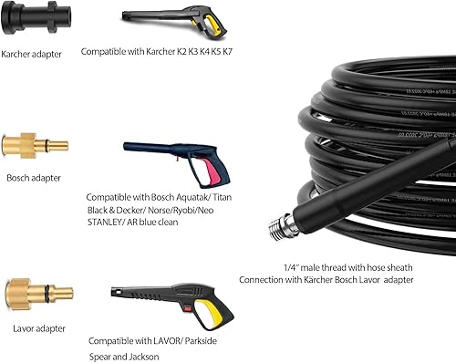 10 m Sonda sturatubi per idropulitrice - compatibile con Kärcher e LAVOR, 180 Bar/2610 PSI - Set con adattatore e ugelli per Kärcher K2 K3 K4 K5 K6 K7
