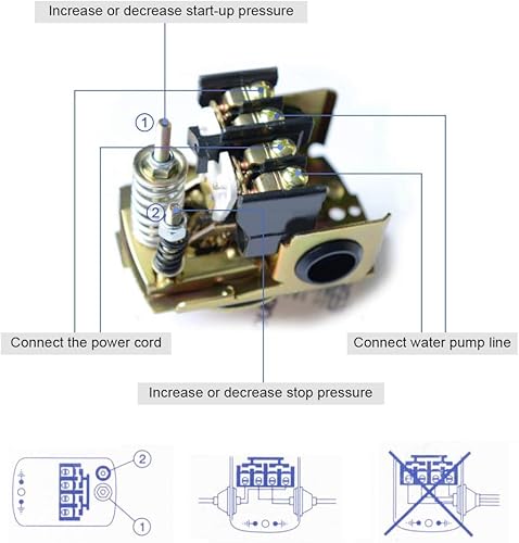 40-60 PSI Interruttore di controllo della pressione della pompa dell'acqua Doppio palo regolabile per pompa d'acqua da giardino a iniezione autoadescante