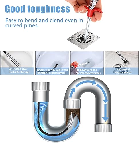 Pulitore di Scarico a Spirale, 4 Pezzi per la Pulizia dei Tubi, Lavandino, Vasca da Bagno, Fogne, WC