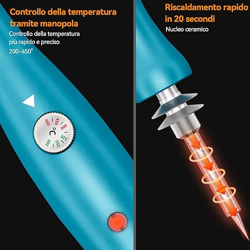 Saldatore a Stagno kit 60W Saldatore di Precisione Professionale con Temperatura Regolabile 200~450 ℃, Interruttore ON/OFF, 58 Punte per Saldatore, 15g Filo di Saldatura per Piccole Riparazioni