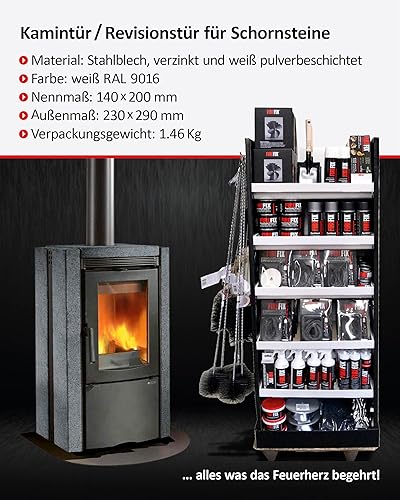 R80/B90 2093/W porta camino zincato e verniciato a polvere, bianco RAL 9016, dimensioni nominale: 140 x 200 mm, dimensioni esterne: 230 x 290 mm