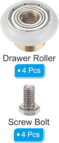 Rulli per Cassetti 20 Mm, 4 Set Pulegge Posizionamento Nylon, Piccola Ruota Ricambio per Cassetti Rondella a Molla e Bullone a Vite per Guide Armadi, Bianco