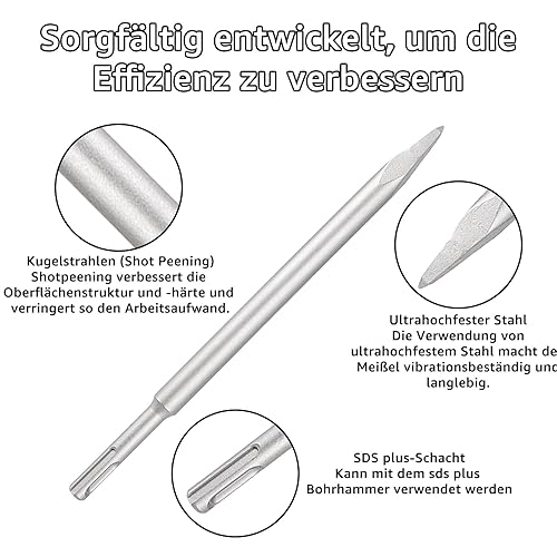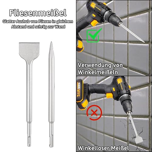 Set di 7 scalpelli SDS Plus, 2 scalpelli per piastrelle, 2 scalpelli larghi, 2 scalpelli piatti, scalpelli appuntiti e scalpelli a U, scalpello SDS di alta qualità per piastrelle, cemento, pietra,