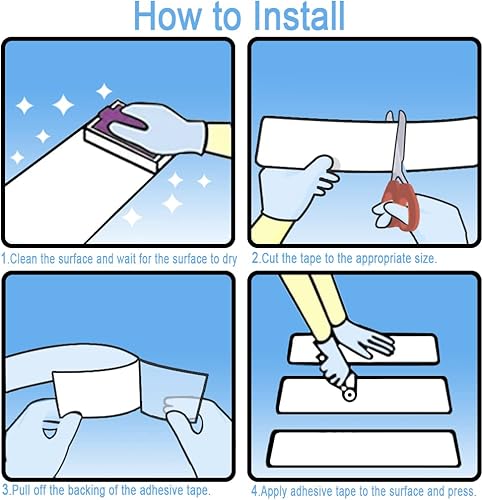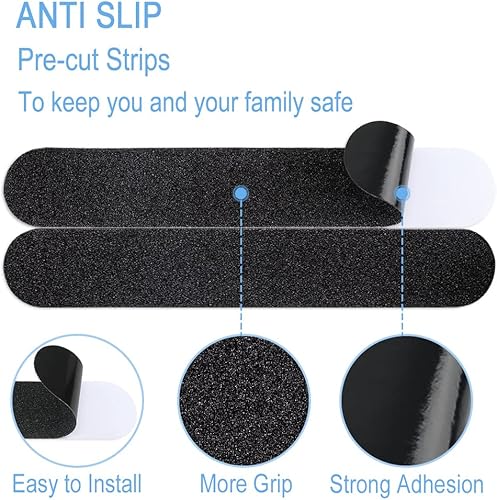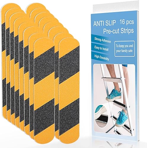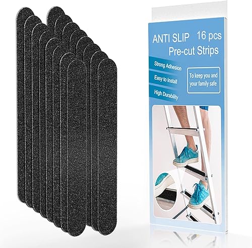 Nastro antiscivolo, 16 strisce antiscivolo pre-tagliate, strisce adesive antiscivolo di sicurezza per scale, sgabello e scale (5 cm x 30 cm, nero)