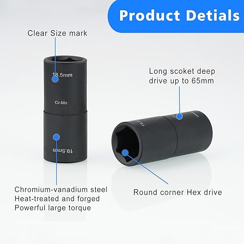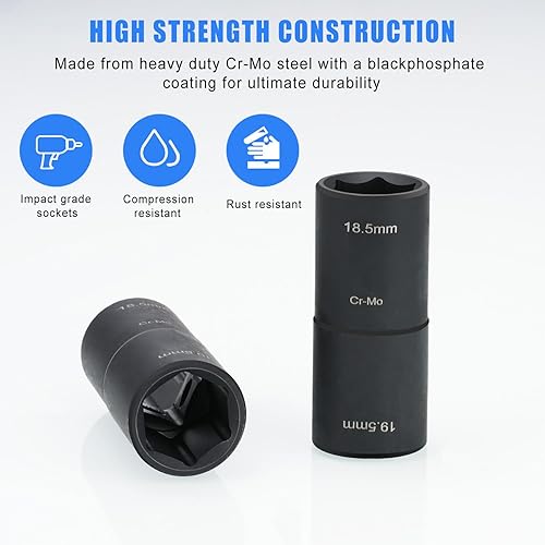 Set di Chiavi a Bussola a Percussione, 18,5 mm, 19,5 mm, Testa Doppia, 1/2'', per Cambio Pneumatici, Adatto per Ford Land Rover e Tutti i Modelli