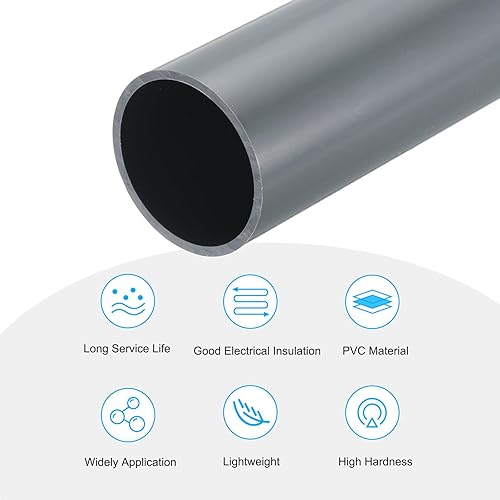 Tubo Rigido Rotondo in PVC 34,2mm ID 38mm OD 8' Lunghezza Grigio Chiaro ad Alta Resistenza per Tubi d'Acqua, Artigianato, Guaina Cavi