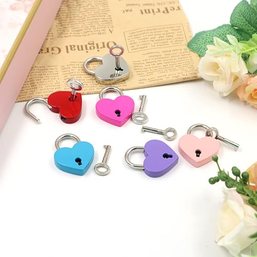 6 piccoli lucchetti in metallo, mini serrature a cuore con chiavi, mini serratura a cuore per il diario dei bagagli (colori)