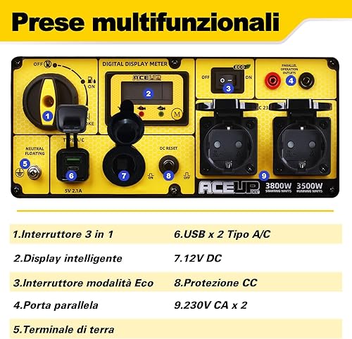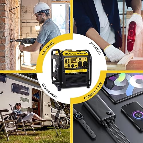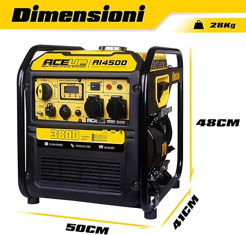 Generatore di corrente, 3800 Watt Generator, Aceup Energy Generatore inverter a benzina, Generatore di emergenza con 5 prese AC/DC/USB, display intelligente, parallelo, modalità Eco, 4 tempi OHV