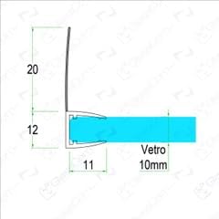 220cm - Guarnizione trasparente con aletta da 20mm per lo spessore di 10mm, ricambio verticale per docce o ante/porte scorrevoli con vetro a giorno - GSAM10
