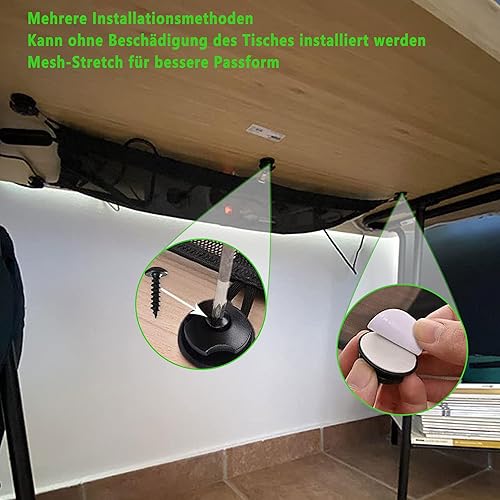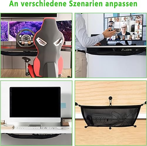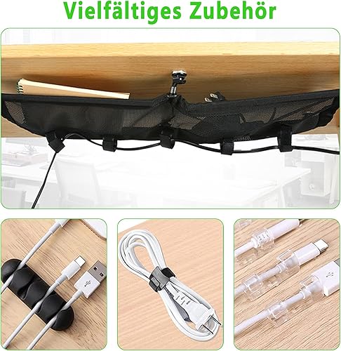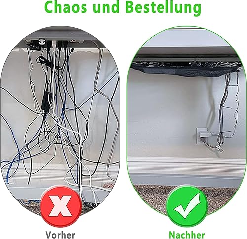 Rete da Scrivania per Cavi: Organizzatore Scrivania con Rete Flessibile - Sistema di Gestione Cavi Sottotavolo per Nascondere i Cavo (68x25.5 cm Nero)