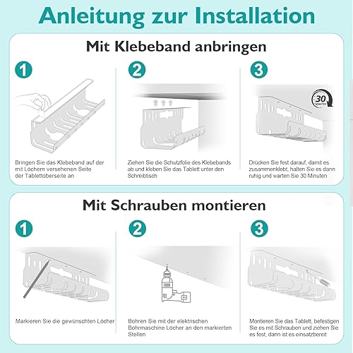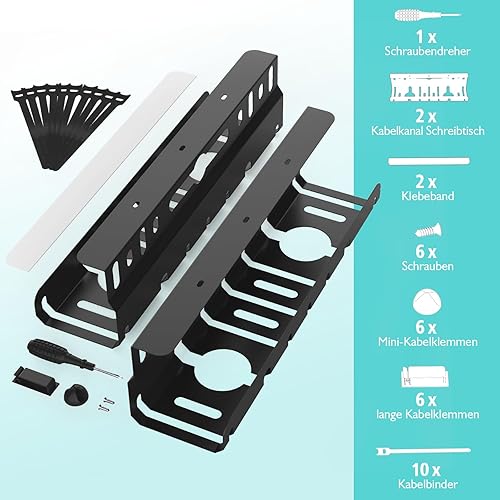 Canalina via Cavo Scrivania, Scrivania per Gestione dei Cavi Senza Foratura, Vassoio per Cavi per la Gestione dei Cavi in Ufficio Domestico Sotto la Scrivania, 2 per Riporre più Cavi