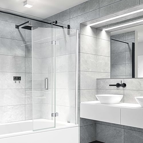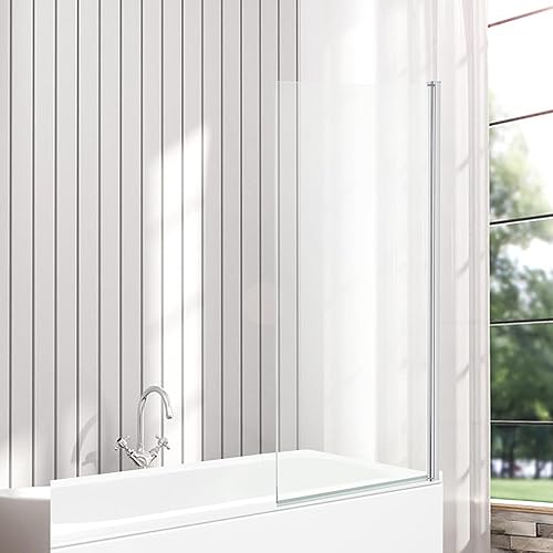 NCEU020 Pannello di Sicurezza per Vasca da Bagno in Vetro temperato con Bordo Quadrato da 6 mm, 1400 x 800 mm, Finitura cromata