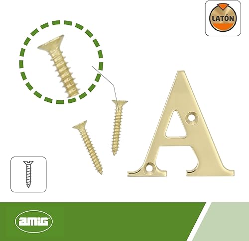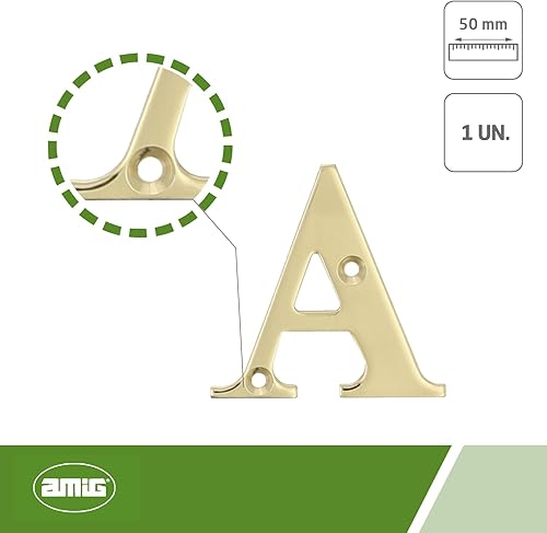 Amig | Lettera A in ottone lucido per viti interne ed esterne | 50 mm | Ideale per portali, pareti o facciate di casa | Finitura dorata