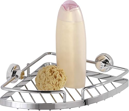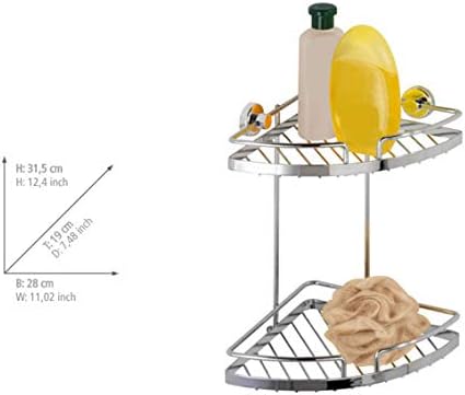 Wenko 17829100 Scaffale Angolare Sion Grande Power-Loc, 2 Ripiani, Fissaggio Senza Trapano, Acciaio, Materiale Plastico, 19 x 31,5 x 28 cm, Cromo