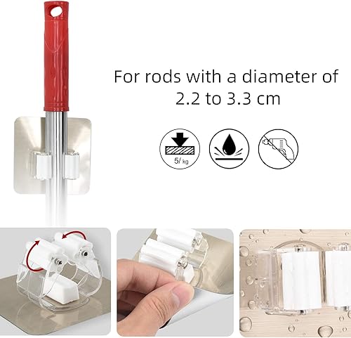 4 Pezzi Muro Montato Mop Holder, Scopa Rastrelliere, Autoadesiva Ganci Supporto per Garage Cucina Gantina Giardino Armadio